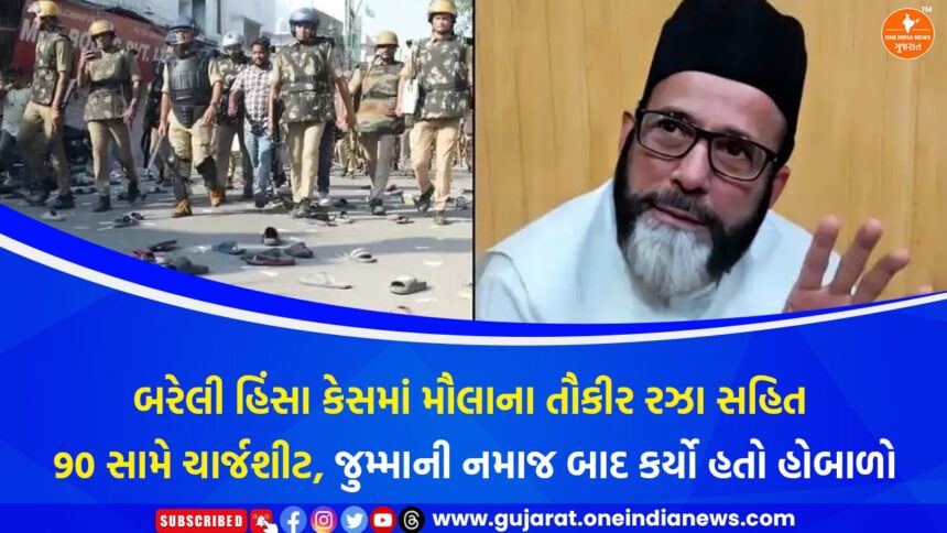 ઉત્તર પ્રદેશના બરેલી જિલ્લામાં ‘આઈ લવ મુહમ્મદ’ વિવાદને લઈને 26 સપ્ટેમ્બર 2025ના રોજ થયેલી ગંભીર હિંસાના મામલે પોલીસે મોટી કાર્યવાહી કરી છે. આ કેસમાં હિંસાના માસ્ટરમાઇન્ડ તરીકે ઓળખાયેલા મૌલાના તૌકીર રઝા સહિત કુલ 90 આરોપીઓ સામે 7 અલગ-અલગ કેસોમાં ચાર્જશીટ દાખલ કરવામાં આવી છે. પોલીસે તમામ આરોપીઓને જેલ મોકલી દીધા છે. આ ચાર્જશીટ મુખ્ય ન્યાયિક મેજિસ્ટ્રેટ અને એડીજે-5ની કોર્ટમાં રજૂ કરવામાં આવી છે.