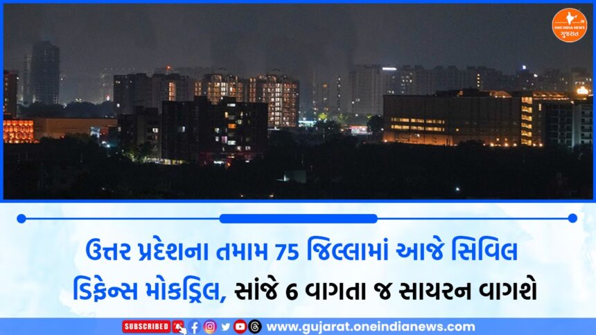 ઉત્તર પ્રદેશમાં આજે શુક્રવારે સાંજે 6 વાગ્યે સમગ્ર રાજ્યમાં રાજ્યવ્યાપી બ્લેકઆઉટ જાહેર કરવામાં આવ્યો છે. આ દરમિયાન શહેરો, ગામડાં તેમજ તમામ શાસકીય અને ખાનગી વિસ્તારોમાં લાઇટો બંધ રાખવામાં આવશે. રાજ્ય સરકાર દ્વારા લોકોને પોતાના ઘરો, દુકાનો અને ઓફિસોમાં પણ લાઇટો બંધ રાખવાની અપીલ કરવામાં આવી છે. બ્લેકઆઉટ શરૂ થતાં જ વિવિધ વિસ્તારોમાં જોરદાર સાયરન વગાડવામાં આવશે, જેથી લોકો સતર્ક બની જાય. આ સમગ્ર પ્રક્રિયા વાસ્તવિક ઈમરજન્સી નહીં પરંતુ સુરક્ષા તૈયારીઓની કસોટી માટે યોજાયેલી વ્યાપક મોક ડ્રિલનો ભાગ છે.