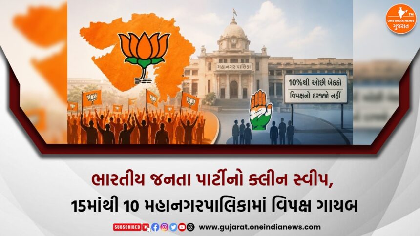 ગુજરાતની સ્થાનિક સ્વરાજ્ય સંસ્થાઓની ચૂંટણીમાં BJPએ એકતરફી વિજય મેળવી રાજકીય દબદબો જમાવ્યો છે. રાજ્યની તમામ 15 મહાનગરપાલિકાઓમાં ભાજપે માત્ર જીત જ નહીં પરંતુ જંગી બહુમત સાથે સત્તા કબજે કરી છે.