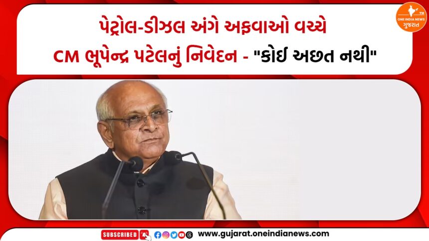 માન. મુખ્યમંત્રી શ્રી ભૂપેન્દ્રભાઈ પટેલની કોઈપણ પ્રકારની અફવાઓથી દોરવાયા વિના કે ગભરાટમાં આવ્યા વગર શાંતિ જાળવવા માટેની નમ્ર અપીલ, તેમજ ઈંધણ પુરવઠો પૂરતો હોવાથી બિનજરૂરી લાઈનો ન લગાવવા માટે જનતાને અનુરોધ…#NoPanicPlease… pic.twitter.com/BnFYh3booG