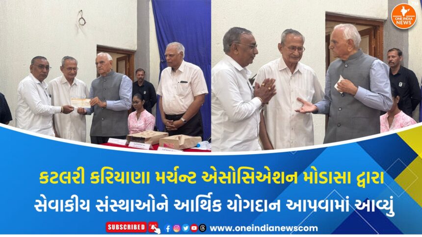 કટલરી કરિયાણા મર્ચન્ટ એસોસિએશન મોડાસા તેના સુવર્ણ જયંતી મહોત્સવ ની પૂર્ણાહૂતિ માં મોડાસા નગરની સેવાકીય સંસ્થા શ્રીમતી કપિલાબેન જે બી શાહ ફાઉન્ડેશન સંચાલિત ઉમંગ ડે કેર સેન્ટરના પ્રારંભ પ્રસંગે રૂપિયા 21000 નો ચેક અર્પણ કરવામાં આવ્યો.