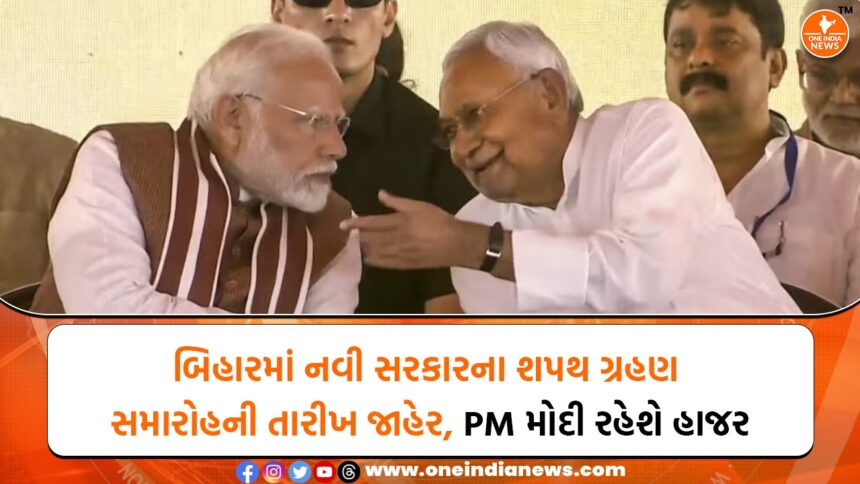 2025ની બિહાર વિધાનસભા ચૂંટણીમાં એનડીએની ઐતિહાસિક જીત પછી નવી સરકાર બનાવવાની પ્રક્રિયા તેજ ગતિએ આગળ વધી રહી છે. એનડીએ સરકારના શપથ ગ્રહણ સમારોહ માટે 20 નવેમ્બરની તારીખ નક્કી કરવામાં આવી છે, અને આ ભવ્ય સમારોહ પટનાના ઐતિહાસિક ગાંધી મેદાનમાં યોજાશે. ખાસ વાત એ છે કે વડા પ્રધાન નરેન્દ્ર મોદી પણ શપથ ગ્રહણ કાર્યક્રમમાં હાજરી આપશે, જેને કારણે આ સમારોહ રાજકીય રીતે વધુ મહત્વનો બન્યો છે.