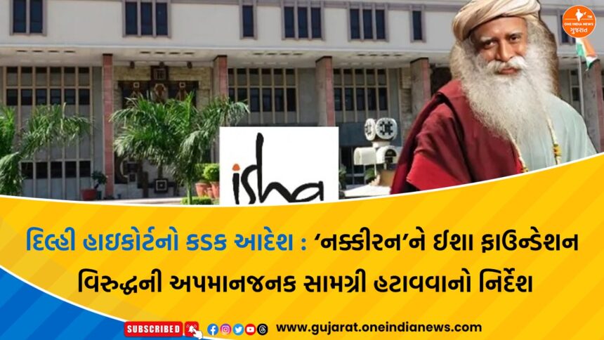 દિલ્હી હાઇકોર્ટએ એક મહત્વપૂર્ણ ચુકાદામાં તમિલ મેગેઝિન નક્કીરન પબ્લિકેશન્સ અને તેના સંપાદક ગોપાલને ઈશા ફાઉન્ડેશન તથા તેના સ્થાપક સદગુરુ જગ્ગી વાસુદેવ વિરુદ્ધ પ્રકાશિત કરાયેલી તમામ અપમાનજનક સામગ્રી તાત્કાલિક દૂર કરવાની ફરજ પાડવામાં આવી છે. જસ્ટિસ સુબ્રમણ્યમ પ્રસાદની બેન્ચે સ્પષ્ટ જણાવ્યું કે મીડિયા દ્વારા ફેલાતી આવી સામગ્રી પ્રથમ દૃષ્ટિએ જ માનહાનિ સમાન લાગે છે.