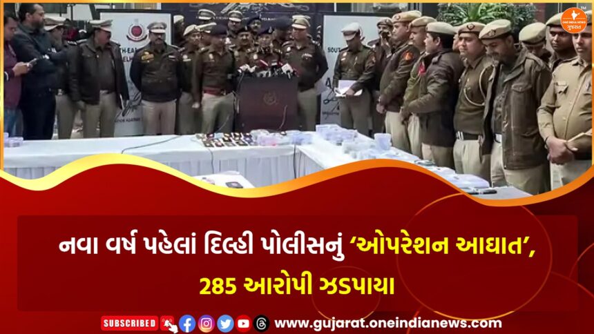 નવા વર્ષ પહેલાં દિલ્હીમાં કાયદો અને વ્યવસ્થા મજબૂત રાખવાના હેતુથી દિલ્હી પોલીસે વિશાળ પાયે ‘ઑપરેશન આઘાત 3.0’ શરૂ કર્યું છે. આ ખાસ અભિયાન હેઠળ પોલીસ દ્વારા એક્સાઇઝ એક્ટ, NDPS એક્ટ અને જુગાર અધિનિયમ સહિતના કાયદાઓ અંતર્ગત કાર્યવાહી કરીને કુલ 285 આરોપીઓને ઝડપી પાડવામાં આવ્યા છે. ઉપરાંત, કોઈ અનિચ્છનીય ઘટના ન બને તે માટે એહતિયાતી પગલાં રૂપે 504 લોકોને કસ્ટડીમાં લેવામાં આવ્યા છે. પોલીસે જણાવ્યું છે કે આ અભિયાનનો મુખ્ય ઉદ્દેશ નવા વર્ષની ઉજવણી દરમિયાન અપરાધિક પ્રવૃત્તિઓ પર અંકુશ મૂકવો અને સામાન્ય નાગરિકોની સુરક્ષા સુનિશ્ચિત કરવો છે.