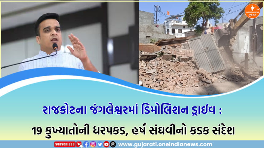 રાજકોટના જંગલેશ્વર વિસ્તારમાં ગેરકાયદે કબજાઓ અને બાંધકામો સામે RMC દ્વારા સૌરાષ્ટ્રના ઇતિહાસની સૌથી મોટી ગણાતી ડિમોલિશન ડ્રાઈવ હાથ ધરાઈ છે. આ કાર્યવાહી ડેપ્યુટી ચીફ મિનિસ્ટર હર્ષ સંઘવીના સીધા માર્ગદર્શન હેઠળ શરૂ થઈ છે. પ્રથમ જ દિવસે 1,000થી વધુ ગેરકાયદે મકાનો અને ઝૂંપડપટ્ટીઓ તોડી પાડવામાં આવ્યા હોવાનું સત્તાવાર સૂત્રો જણાવી રહ્યા છે.