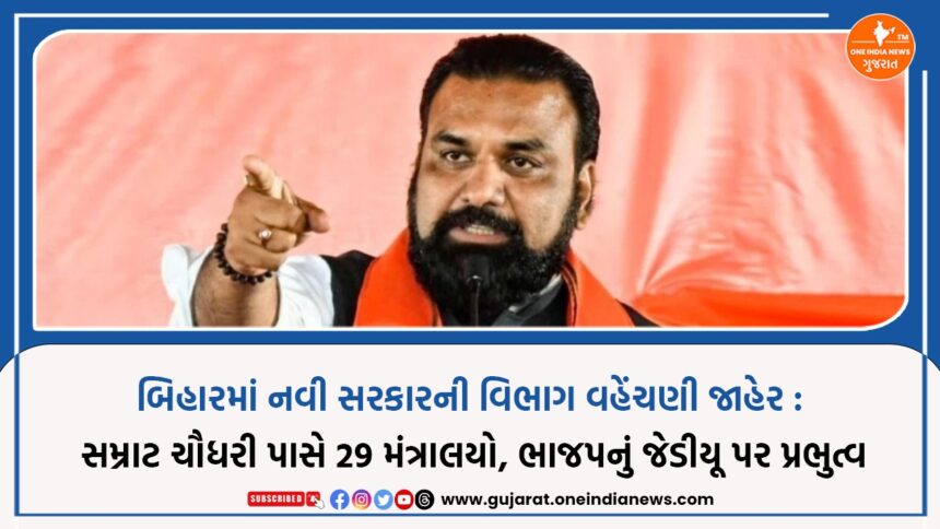 બિહારમાં નવી સરકારની વિભાગ વહેંચણી જાહેર : સમ્રાટ ચૌધરી પાસે 29 મંત્રાલયો, ભાજપનું જેડીયૂ પર પ્રભુત્વ