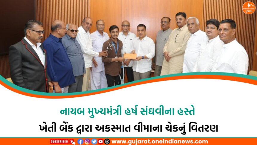 ગાંધીનગર ખાતે હર્ષ સંઘવીની અધ્યક્ષતામાં ગુજરાત સ્ટેટ કો-ઓપરેટીવ એગ્રીકલ્ચર એન્ડ રૂરલ ડેવલપમેન્ટ બેંક લિમિટેડ (ખેતી બેંક), અમદાવાદ દ્વારા મહત્વપૂર્ણ કાર્યક્રમ યોજાયો હતો. આ પ્રસંગે ખેડૂત લાભાર્થીઓના પરિવારજનોને અકસ્માત વીમા સહાયના ચેક વિતરણ કરવામાં આવ્યા હતા તેમજ દિવ્યાંગ કર્મચારીઓને કાયમી નિમણૂક પત્રો એનાયત કરવામાં આવ્યા હતા.