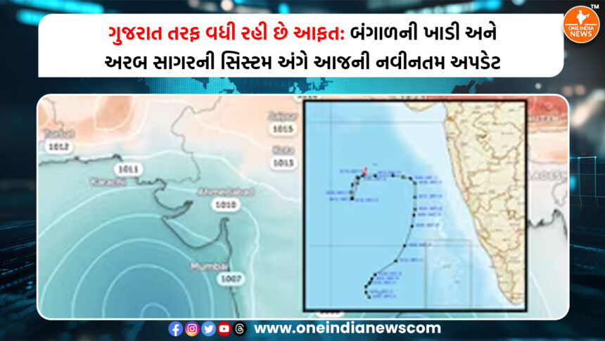 પૂર્વ-મધ્ય અરબી સમુદ્ર પર ડિપ્રેશનની વાત કરીએ તો, તે ડિપ્રેશન છેલ્લા 6 કલાક દરમિયાન સ્થિર રહ્યું હતું અને ગઈકાલે, 27 ઓક્ટોબર 2025 ના રોજ 2330 કલાકે, વેરાવળ (ગુજરાત) થી લગભગ 570 કિમી દક્ષિણપશ્ચિમ, મુંબઈ (મહારાષ્ટ્ર) થી લગભગ 650 કિમી પશ્ચિમ-દક્ષિણપશ્ચિમ, પણજી (ગોવા) થી લગભગ 710 કિમી પશ્ચિમ-ઉત્તરપશ્ચિમ, અમીનીદિવી (લક્ષદ્વીપ) થી 850 કિમી ઉત્તરપશ્ચિમ અને મેંગલોર (કર્ણાટક) થી લગભગ 920 કિમી પશ્ચિમ-ઉત્તરપશ્ચિમમાં કેન્દ્રિત હતું. આગામી સમયમાં દરમિયાન તે પૂર્વ-મધ્ય અરબી સમુદ્રમાં લગભગ ઉત્તર-ઉત્તરપૂર્વ તરફ આગળ વધવાની સંભાવના છે.