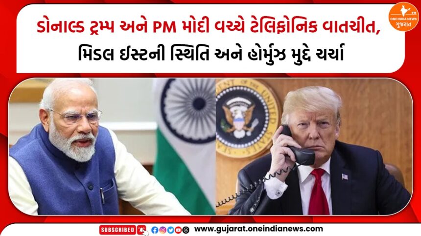 મધ્ય પૂર્વમાં ઉગ્ર તણાવ વચ્ચે ભારતના વડાપ્રધાન નરેન્દ્ર મોદી અને અમેરિકાના રાષ્ટ્રપ્રમુખ ડોનાલ્ડ ટ્રમ્પ વચ્ચે મહત્વપૂર્ણ ફોનકૉલ થઈ છે. આ ફોન વાતચીત દરમિયાન બંને નેતાઓએ ખાસ કરીને ‘સ્ટ્રેટ ઓફ હોર્મુઝ’ ખુલ્લું રાખવાની મહત્વતા પર ભાર મુક્યો.