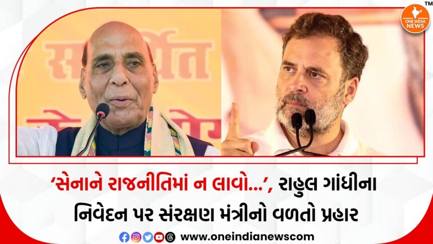 One India News > News > Gujarat > ‘સેનાને રાજનીતિમાં ન લાવો…’, રાહુલ ગાંધીના નિવેદન પર સંરક્ષણ મંત્રીનો વળતો પ્રહાર