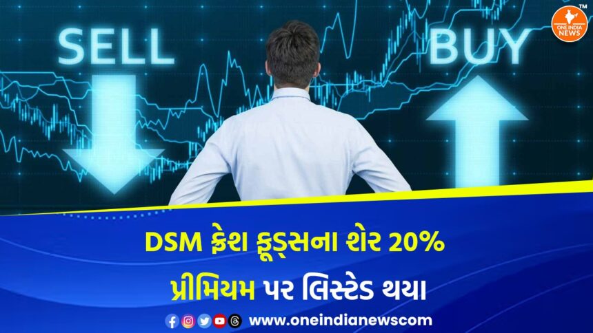 આજે ભારતીય શેરબજારમાં મિશ્ર સંકેતો વચ્ચે કારોબારની શરૂઆત થઈ, પરંતુ ઘણા ક્ષેત્રોમાં તેજીનું મિજાજ જોવા મળ્યું. DSM ફ્રેશ ફૂડ્સના શેરોએ આજે BSE SME પ્લેટફોર્મ પર મજબૂત ડેબ્યુ આપ્યું. કંપનીના IPO ને રોકાણકારો તરફથી જોરદાર પ્રતિસાદ મળ્યો હતો — 13 ગણા વધુ બોલીઓ મળી હતી. IPO હેઠળ શેરો ₹100 ના ભાવે જારી કરવામાં આવ્યા હતા, અને લિસ્ટિંગના દિવસે તે ₹120.00 ના ભાવે ખુલે છે, એટલે કે 20% નો લિસ્ટિંગ ગેઇન મળ્યો. SME સેગમેન્ટમાં આ લિસ્ટિંગને એક પોઝિટિવ સંકેત તરીકે જોવામાં આવી રહ્યું છે, જે નાના રોકાણકારોમાં વિશ્વાસ વધારશે.