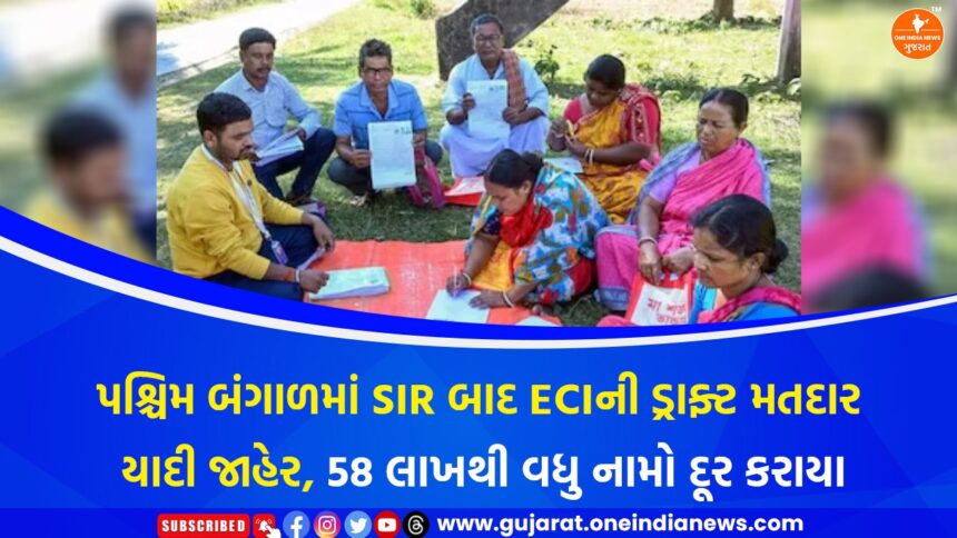 પશ્ચિમ બંગાળમાં આવનારી વિધાનસભા ચૂંટણીને ધ્યાનમાં રાખીને ચૂંટણી આયોગે સ્પેશિયલ ઇન્ટેન્સિવ રિવિઝન (SIR) પ્રક્રિયા પૂર્ણ કર્યા બાદ ડ્રાફ્ટ મતદાર યાદી જાહેર કરી છે. આ પ્રક્રિયા દરમિયાન રાજ્યમાંથી 58 લાખથી વધુ મતદારોના નામ યાદીમાંથી કાઢી નાખવામાં આવ્યા છે, જે રાજકીય અને જાહેર સ્તરે ભારે ચર્ચાનો વિષય બન્યું છે. ચૂંટણી આયોગના જણાવ્યા અનુસાર કુલ 58,20,898 નામો દૂર કરવામાં આવ્યા છે, જેમાં સૌથી વધુ 24 લાખ મતદારો મૃત્યુ પામેલા હોવાનું સામે આવ્યું છે. ઉપરાંત લગભગ 19 લાખ મતદારો સ્થળાંતર કરી કાયમી રીતે અન્યત્ર વસવાટ કરતા હોવાનું, 12 લાખ જેટલા મતદારો ગેરહાજર અથવા ગાયબ હોવાનું અને 1.37 લાખ નામો ડુપ્લિકેટ હોવાનું નોંધાયું છે.