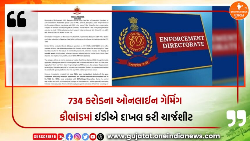 ઇનફોર્સમેન્ટ ડિરેક્ટોરેટ (ED) એ ઓનલાઈન ગેમિંગ એપ WinZo અને તેના પ્રમોટરો વિરુદ્ધ ગંભીર ચાર્જશીટ દાખલ કરી છે, જેમાં એક ભવ્ય 734 કરોડ રૂપિયાનો કૌભાંડ પ્રકાશમાં આવ્યો છે. તપાસમાં જાણવા મળ્યું છે કે WinZo પ્લેટફોર્મ પર બોટ્સ અને AI ટેક્નોલોજીનો ઉપયોગ કરીને ખેલાડીઓને છેતરપિંડી કરી, તેમની સાથે ન્યાયસરહીત વ્યવહાર કર્યો.
