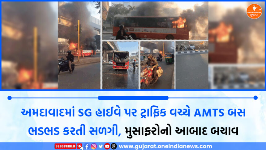 મળતી માહિતી મુજબ, AMTS બસ સોલા સિવિલ રોડ પરથી પસાર થઈ રહી હતી ત્યારે અચાનક એન્જિનના ભાગમાંથી ધુમાડો નીકળવાનું શરૂ થયું હતું. થોડા જ સમયમાં આગ લાગી હોવાનું જણાતાં બસના ડ્રાઈવર અને કંડક્ટરે પરિસ્થિતિની ગંભીરતા સમજી સમયસૂચકતા દાખવી હતી.