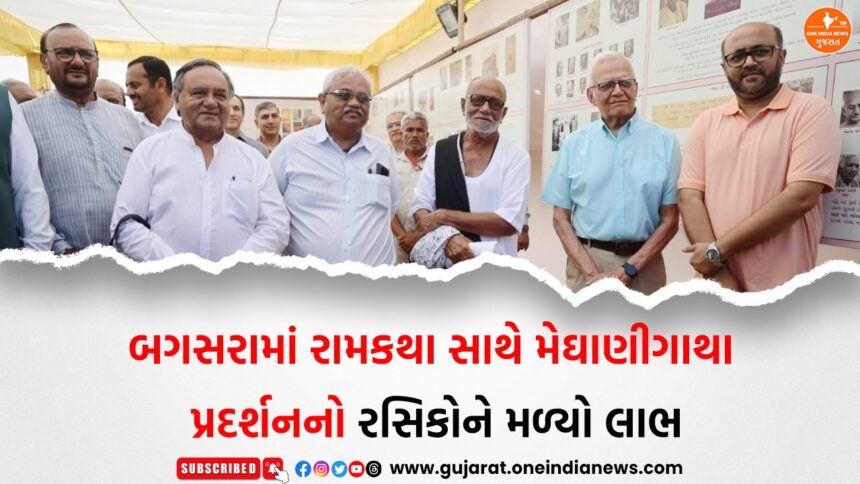 બગસરામાં મોરારિબાપુના વ્યાસાસને રામકથા ‘માનસ મેઘાણી’ સાથે ઝવેરચંદ મેઘાણી સંદર્ભે સુંદર ઉપક્રમ યોજાયો છે, આ રામકથા સાથે મેઘાણીગાથા પ્રદર્શનનો રસિકોને લાભ મળ્યો છે.