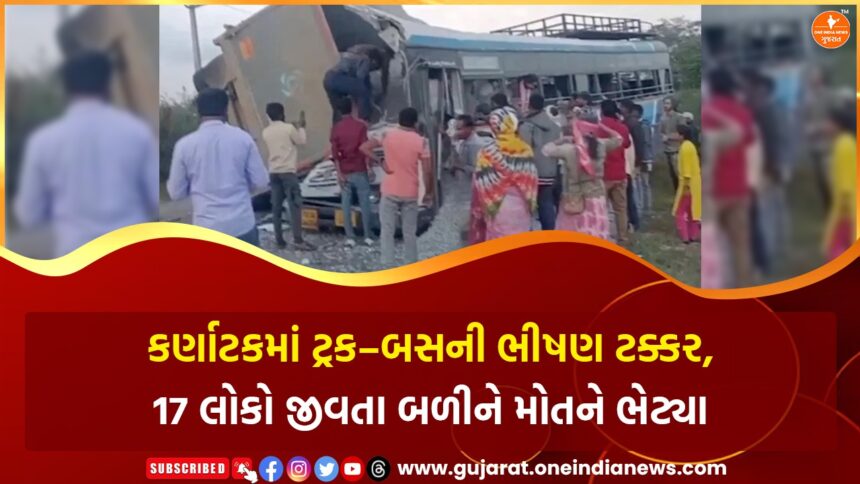 કર્ણાટકના ચિત્રદુર્ગ જિલ્લાના હિરિયૂર તાલુકામાં ગુરુવારે સવારે એક ભયાનક માર્ગ અકસ્માત સર્જાયો, જેમાં ઓછામાં ઓછા 17 લોકોના મોત થયાની આશંકા છે. રાષ્ટ્રીય ધોરીમાર્ગ-48 પર ગોરલાથુ ક્રોસ નજીક બનેલી આ દુર્ઘટનામાં બેંગલુરુથી શિવમોગ્ગા જઈ રહેલી એક સ્લીપર બસ અને સામેથી આવી રહેલી ટ્રક વચ્ચે જોરદાર ટક્કર થઈ હતી.
