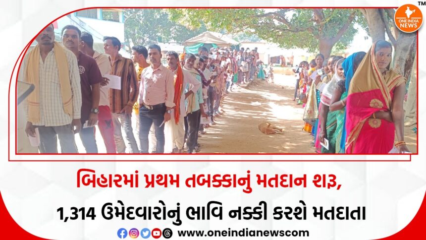 બિહાર વિધાનસભા ચૂંટણીના પ્રથમ તબક્કામાં આજે રાજ્યના 18 જિલ્લાઓની 121 બેઠકો માટે મતદાન ચાલી રહ્યું છે. સવારે 7 વાગ્યે મતદાન શરૂ થયું છે અને સાંજે 6 વાગ્યા સુધી ચાલશે, જ્યારે છ વિધાનસભા વિસ્તારોમાં સુરક્ષા અને વ્યવસ્થાને ધ્યાનમાં રાખીને મતદાન સાંજે 5 વાગ્યા સુધી પૂર્ણ કરવામાં આવશે. આ તબક્કામાં કુલ 45,341 મતદાન મથકો પર મતદાન થઈ રહ્યું છે. આ સાથે જ રાજ્યમાં લોકશાહીના આ ભવ્ય ઉત્સવની શરૂઆત થઈ છે, જ્યાં લાખો મતદારો પોતાનું લોકશાહી અધિકાર ઉપયોગ કરી રહ્યા છે.
