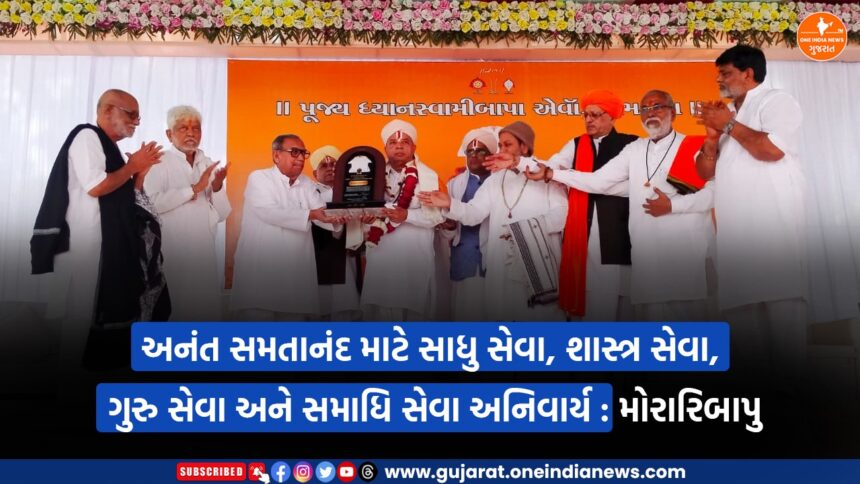 દેહાણ્ય જગ્યામાં સુપ્રસિદ્ધ લાલજી મહારાજ જગ્યા સાયલાને સન્માન અર્પણ કરતી વેળાએ મોરારિબાપુએ યોગવશિષ્ઠ રામાયણજી ઉલ્લેખ સાથે પરમાર્થ હેતુ અનંત સમતાનંદ માટે સાધુ સેવા, શાસ્ત્ર સેવા, ગુરુ સેવા અને સમાધિ સેવા અનિવાર્ય ગણાવી. ચમત્કારો નહી પણ સાક્ષાત્કારો થઈ રહ્યાનું ભાર પૂર્વક જણાવી પાત્રતા પ્રમાણે અનુભૂતિ થતી હોવાનું ઉમેર્યું.
