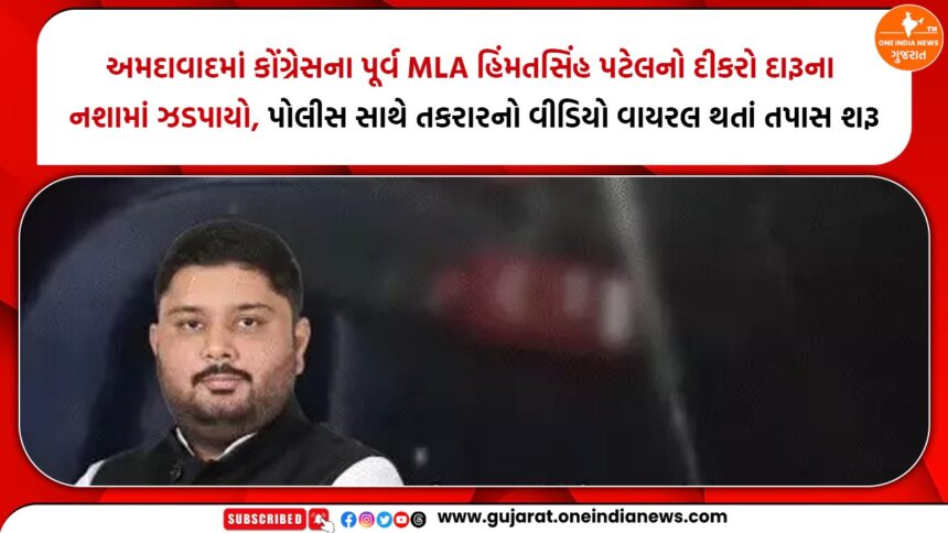 Reading: અમદાવાદમાં કોંગ્રેસના પૂર્વ MLA હિંમતસિંહ પટેલનો દીકરો દારૂના નશામાં ઝડપાયો, પોલીસ સાથે તકરારનો વીડિયો વાયરલ થતાં તપાસ શરૂ