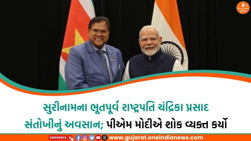 સોશિયલ મીડિયા પ્લેટફોર્મ પર એક પોસ્ટમાં, પીએમ મોદીએ કહ્યું, “મારા મિત્ર અને સુરીનામના ભૂતપૂર્વ રાષ્ટ્રપતિ ચંદ્રિકા પ્રસાદ સંતોખીજીના અચાનક અવસાનથી હું ખૂબ જ આઘાત અને દુઃખી છું. આ માત્ર સુરીનામ માટે જ નહીં પરંતુ વિશ્વભરના ભારતીય સમુદાય માટે પણ એક અપૂર્ણ નુકસાન છે.”તેમની વાતચીત પર પ્રતિબિંબિત કરતા, પ્રધાનમંત્રીએ કહ્યું, “મને તેમની સાથેની મારી ઘણી મુલાકાતો આબેહૂબ યાદ છે. સુરીનામ પ્રત્યેની તેમની અથાક સેવા અને ભારત-સુરીનામ સંબંધોને મજબૂત કરવાના તેમના પ્રયાસો અમારી વાતચીતમાં સ્પષ્ટ હતા. ભારતીય સંસ્કૃતિ પ્રત્યે તેમનો વિશેષ લગાવ હતો. સંસ્કૃતમાં શપથ ગ્રહણ કરતી વખતે તેમણે ઘણા લોકોના દિલ જીતી લીધા.”પ્રધાનમંત્રી મોદીએ આગળ કહ્યું, “દુઃખની આ ઘડીમાં હું તેમના પરિવાર અને સુરીનામના લોકો પ્રત્યે મારી ઊંડી સંવેદના વ્યક્ત કરું છું. ઓમ શાંતિ.” પ્રધાનમંત્રીએ સ્વર્ગસ્થ નેતા સાથેની તેમની અગાઉની મુલાકાતોના ફોટા પણ શેર કર્યા.સુરીનામના ભૂતપૂર્વ રાષ્ટ્રપતિ ચંદ્રિકાપ્રસાદ સંતોખીનું 67 વર્ષની વયે અવસાન થયું છે. સ્થાનિક મીડિયાએ મંગળવારે (ભારતીય સમય) આ સમાચાર આપ્યા હતા. જોકે, તેમના મૃત્યુનું કારણ જાહેર કરવામાં આવ્યું ન હતું. ભૂતપૂર્વ રાષ્ટ્રપતિ સંતોખીનો પણ ભારતીય રાજ્ય બિહાર સાથે ખાસ સંબંધ હતો.
