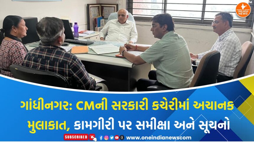ગુજરાતના મુખ્યમંત્રી ભૂપેન્દ્ર પટેલ સતત એ પ્રયાસમાં રહ્યા છે કે રાજ્યના તંત્રની કામગીરી નાગરિકહિતમાં વધુ અસરકારક બને અને સરકારી તંત્રમાં જવાબદારી અને જવાબદારીના ભાવને પ્રોત્સાહન મળે. આ અભિગમ અંતર્ગત તેઓ સમયાંતરે રાજ્ય સરકારના વિવિધ વિભાગો અને જિલ્લા કચેરીઓની ઓચિંતી મુલાકાત લેતા રહે છે, જેથી કામગીરીની હકીકત સ્થળ પર જઈને જાણી શકાય. આ જ પ્રયાસના ભાગરૂપે મુખ્યમંત્રી ભૂપેન્દ્ર પટેલે ગુરુવારે ગાંધીનગરના સહયોગ સંકુલ ખાતે આવેલી ગુજરાત પાણી પુરવઠા અને ગટર વ્યવસ્થા બોર્ડની જાહેર આરોગ્ય બાંધકામ વિભાગની કચેરીની અચાનક મુલાકાત લીધી હતી.