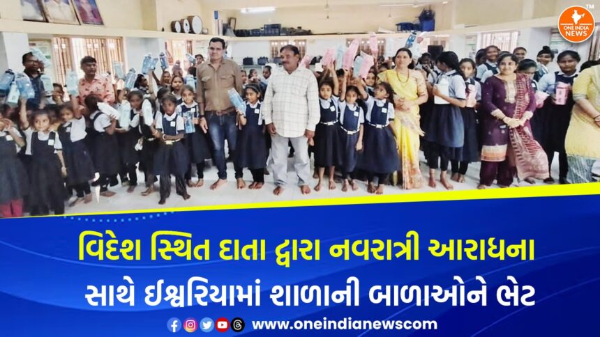 વિદેશ સ્થિત આ પરિવારના દાતા નિલેશભાઈ ગોળકિયા તથા શ્રધ્ધાબેન ગોળકિયા દ્વારા નવરાત્રી ઉપવાસ આરાધના સંદર્ભે આ સાથે ઈશ્વરિયામાં શાળાની બાળાઓને આ ભેટ વિતરણ થયું છે.