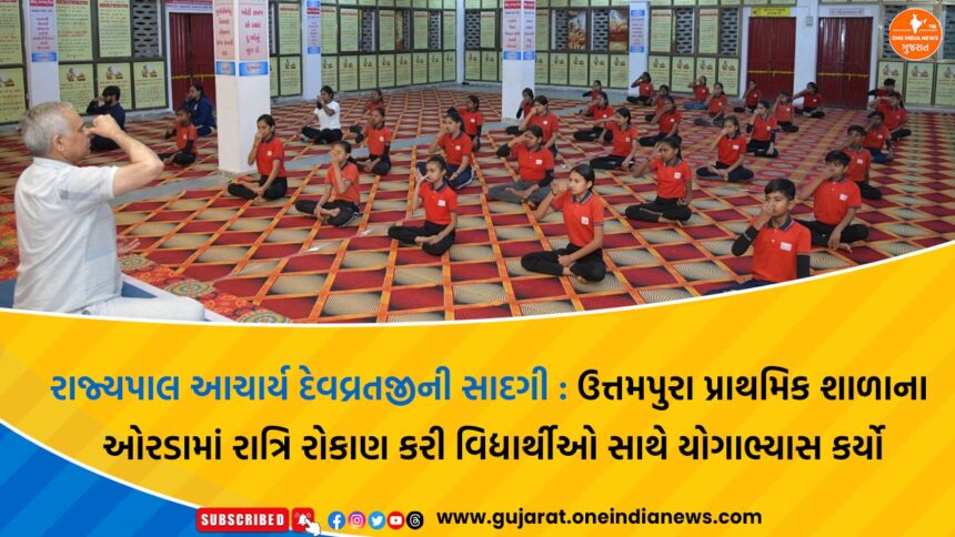 ગુજરાતના રાજ્યપાલ આચાર્ય દેવવ્રતજીએ ફરી એકવાર પોતાની સાદગી અને ગ્રામ્ય જીવન પ્રત્યેના લગાવથી સૌનું ધ્યાન ખેંચ્યું છે. તેમણે ઉત્તમપુરા (ડાંગીયા) પ્રાથમિક શાળાના એક સામાન્ય ઓરડામાં રાત્રિ રોકાણ કરીને સરળ અને સહજ જીવનશૈલીનો અનોખો સંદેશ આપ્યો હતો. કોઈપણ પ્રકારના વૈભવ કે વિશેષ વ્યવસ્થા વિના વિતાવેલી આ રાત્રિએ સ્થાનિક સમાજ અને શાળાના વિદ્યાર્થીઓમાં આત્મીયતા અને પ્રેરણા જગાવી છે.