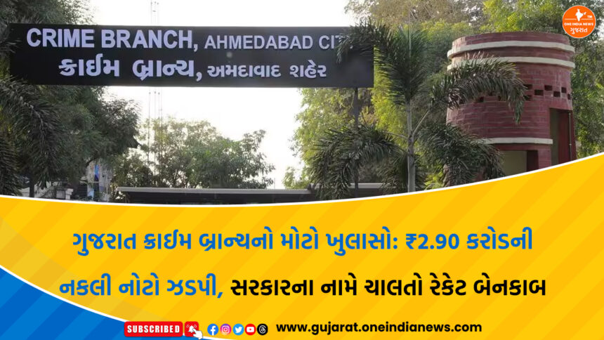 One India News > News > Ahmedabad > ગુજરાત ક્રાઈમ બ્રાન્ચનો મોટો ખુલાસો: ₹2.90 કરોડની નકલી નોટો ઝડપી, સરકારના નામે ચાલતો રેકેટ બેનકાબ