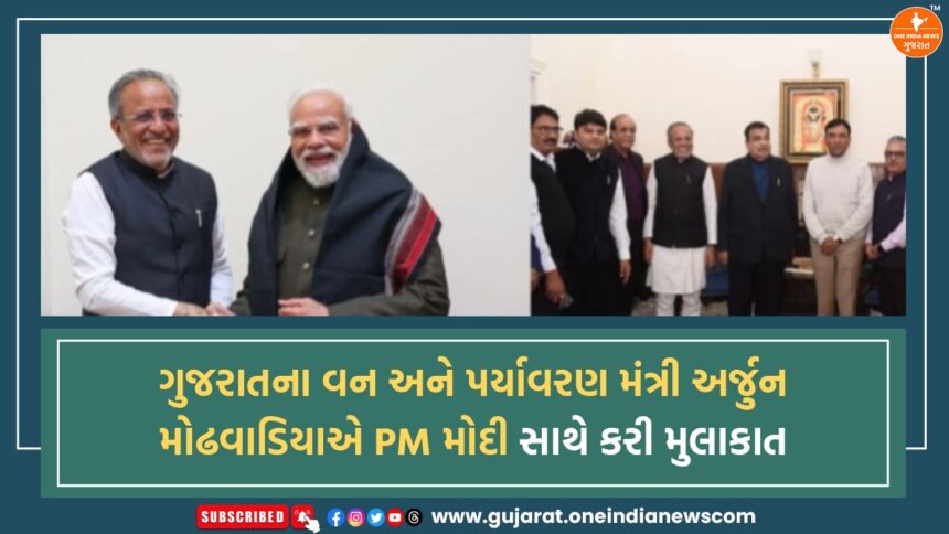 ગુજરાતના વન અને પર્યાવરણ મંત્રી અર્જુન મોઢવાડિયાએ તેમના બે દિવસના દિલ્હી પ્રવાસ દરમિયાન વડાપ્રધાન નરેન્દ્ર મોદી સાથે શુભેચ્છા મુલાકાત લીધી. આ મુલાકાત દરમિયાન મુખ્યત્વે રાજ્યના વિવિધ વિકાસલક્ષી મુદ્દાઓ પર ચર્ચા કરવામાં આવી હતી, જેમાં ખાસ કરીને વન સંરક્ષણ, પર્યાવરણ સંબંધિત યોજનાઓ અને નવીન ઈન્ફ્રાસ્ટ્રક્ચર પ્રોજેક્ટ્સને કેન્દ્ર સરકાર તરફથી ટેકો મળવો મહત્વનો મુદ્દો રહ્યો.