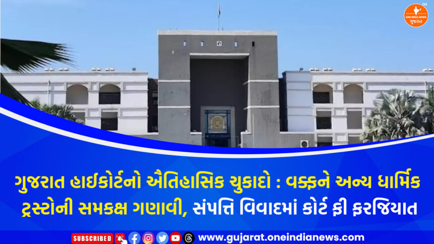 ગુજરાત હાઈકોર્ટે એક સીમાચિહ્નરૂપ અને ઐતિહાસિક ચુકાદો આપતાં સ્પષ્ટ કર્યું છે કે વક્ફને હવે અન્ય તમામ ધાર્મિક ટ્રસ્ટોની સમકક્ષ ગણવામાં આવશે અને સંપત્તિ સંબંધિત કોઈપણ વિવાદમાં વક્ફ બોર્ડે પણ નિયત કોર્ટ ફી ફરજિયાત ભરવી પડશે. હાઈકોર્ટે જણાવ્યું કે કાયદાની નજરે કોઈ પણ સંસ્થા અથવા વાદી વિશેષાધિકાર ધરાવતી નથી અને જે નિયમો હિન્દુ કે અન્ય ધાર્મિક ટ્રસ્ટો માટે લાગુ પડે છે, તે જ નિયમો વક્ફ પર પણ લાગુ પડશે.