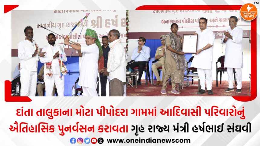 ગૃહ રાજ્યમંત્રી હર્ષભાઈ સંઘવીએ આજરોજ બનાસકાંઠાના દાંતા તાલુકાના મોટા પીપોદરા ગામના ૨૯ કોદરવી પરિવારના ૩૦૦ જેટલા સભ્યોનું પુનર્વસન કરાયું હતું. આદિવાસી સમાજના એક કુરિવાજ ચડોતરુંના કારણે મોટા પીપોદરા ગામમાંથી ૧૨ વર્ષ પહેલા હૃદય પર પથ્થર મૂકીને પોતાનું વતન છોડીને કોદરવી પરિવારના ૩૦૦ જેટલા સભ્યો આ ગામમાંથી સ્થળાંતર કરીને ચાલ્યા ગયા હતા. ગૃહ રાજ્યમંત્રી હર્ષભાઈ સંઘવી સહિત જિલ્લા વહીવટી તંત્ર અને પોલીસ વિભાગ સાથે આદિવાસી સમાજના આ પરિવારોને સંપૂર્ણ માન સન્માન સાથે પોતાના ગામમાં પુનર્વસન માટેનો આ એક ઐતિહાસિક પ્રસંગ યોજાયો હતો.