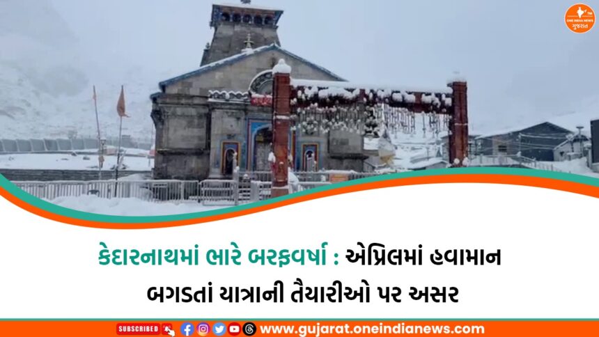 એપ્રિલ મહિનાની શરૂઆત સાથે જ ઉત્તરાખંડમાં હવામાનમાં અચાનક મોટો પલટો જોવા મળ્યો છે. વિશ્વપ્રસિદ્ધ કેદારનાથ મંદિર ખાતે ગઈ રાતથી સતત ભારે બરફવર્ષા થઈ રહી છે, જેના કારણે આખો વિસ્તાર બરફની જાડી ચાદરથી ઢંકાઈ ગયો છે. તાજેતરમાં સાફ કરાયેલા માર્ગો ફરીથી બરફથી ઢંકાઈ જતા યાત્રાધામોની તૈયારીઓમાં મોટો વિક્ષેપ આવ્યો છે.