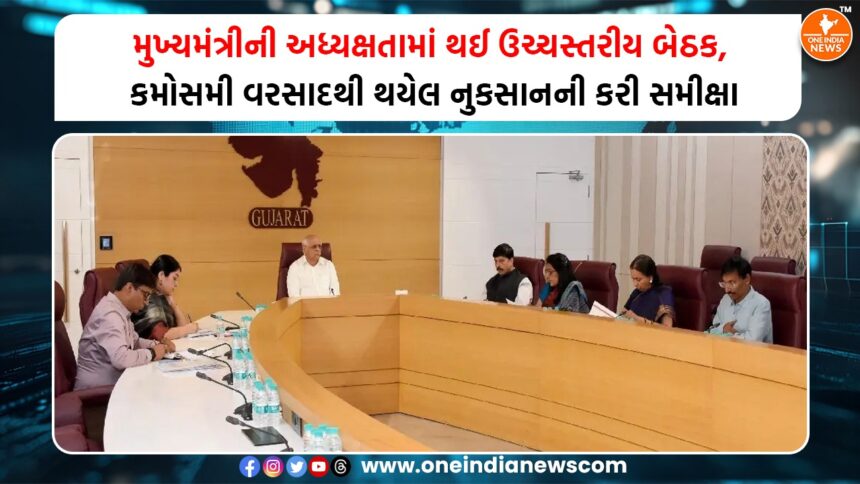 આ સંદર્ભમાં મુખ્યમંત્રી ભૂપેન્દ્ર પટેલે ગાંધીનગર ખાતે એક ઉચ્ચસ્તરીય બેઠક યોજી હતી, જેમાં રાજ્યના વિવિધ જિલ્લાઓમાં થયેલા પાકના નુકસાનના પ્રાથમિક સર્વે, તાત્કાલિક રાહત પગલાં અને આવનારા દિવસોમાં સંભવિત નીતિગત નિર્ણયોની ચર્ચા કરવામાં આવી હતી. બેઠકમાં નાયબ મુખ્યમંત્રી હર્ષ સંઘવી અને કૃષિ મંત્રી જીતુભાઈ વાઘાણી વિડિયો કોન્ફરન્સ દ્વારા જોડાયા હતા અને તેમણે સંબંધિત જિલ્લાઓની સ્થિતિ અંગે વિગતવાર માહિતી પૂરી પાડી હતી.