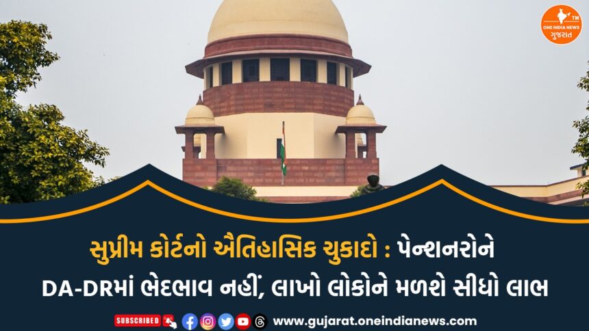 દેશના લાખો પેન્શનરો માટે મોટી રાહતરૂપ નિર્ણય આપતાં સુપ્રીમ કોર્ટએ મોંઘવારી ભથ્થા (Dearness Allowance – DA) અને મોંઘવારી રાહત (Dearness Relief – DR) મામલે મહત્વપૂર્ણ ચુકાદો આપ્યો છે. જસ્ટિસ મનોજ મિશ્રા અને જસ્ટિસ પ્રસન્ના બી. વરાલે ની બેન્ચે સ્પષ્ટ કહ્યું કે રાજ્ય સરકારો પેન્શનરોને મળતી DRનો દર કાર્યરત કર્મચારીઓના DA કરતા ઓછો રાખી શકે નહીં.