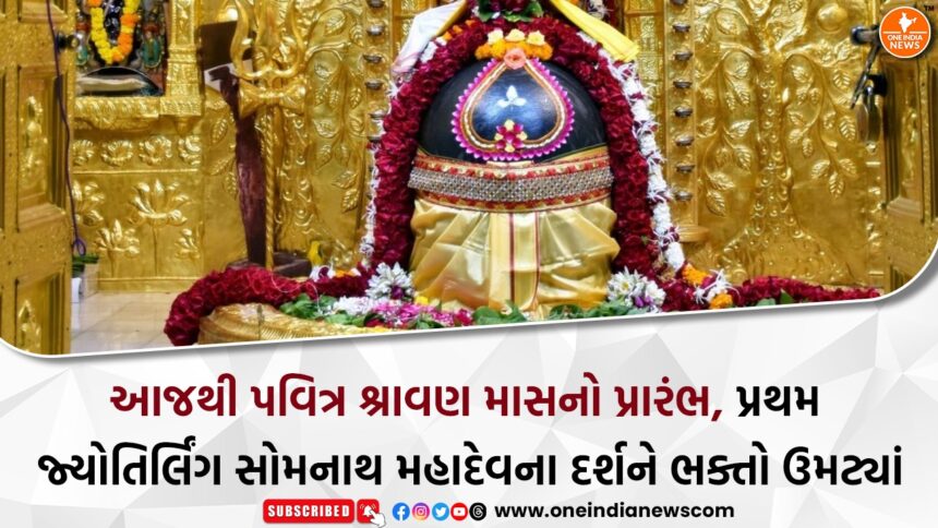 આજે પવિત્ર શ્રાવણ માસનો પ્રથમ દિવસ છે, જેના તહેવારસમાં સમગ્ર દેશમાં ભક્તિમય માહોલ છવાયો છે. ખાસ કરીને પ્રથમ જ્યોતિર્લિંગ તરીકે પૂજાતા સોમનાથ મહાદેવના દર્શન માટે હજારો શ્રદ્ધાળુઓ ભક્તિભાવથી સોમનાથ ધામે ઉમટ્યા છે. સોમનાથ મંદિર પરિસરમાં “હર હર મહાદેવ” અને “જય સોમનાથ”ના નાદ સાથે સમગ્ર વાતાવરણ ઘોષણાર્થ અને ધર્મમય બની ગયું છે. શ્રાવણ માસના આરંભને ધ્યાનમાં લઈને સોમનાથ મંદિર આજે સામાન્ય દિવસો કરતા અડધો કલાક વહેલું એટલે કે સવારે 5:30 વાગ્યે ભક્તો માટે ખુલ્લું મૂકવામાં આવ્યું હતું. મંદિરમાં આજે મહાદેવજીનો વિશેષ શૃંગાર કરવામાં આવ્યો છે અને દર્શન માટે ખાસ વ્યવસ્થા ગોઠવાઈ છે.