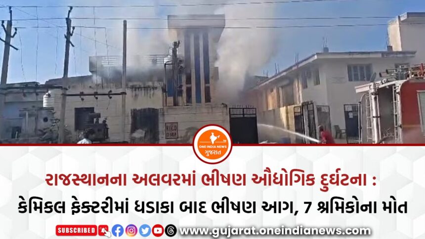 રાજસ્થાનના અલવર જિલ્લામાંથી હૃદયદ્રાવક ઘટના સામે આવી છે, જ્યાં ખુશખેડા ઔદ્યોગિક વિસ્તારમાં આવેલી એક ફેક્ટરીમાં ભીષણ આગ લાગતાં સાત લોકોના કરૂણ મોત નિપજ્યા છે. આગ એટલી વિકરાળ હતી કે થોડા જ સમયમાં સમગ્ર ફેક્ટરી આગની લપેટમાં આવી ગઈ અને અંદર કામ કરી રહેલા લોકોને બહાર નીકળવાની તક પણ મળી નહોતી. આ ઘટનાએ સમગ્ર વિસ્તારમાં શોક અને ભયનું માહોલ સર્જી દીધું છે.