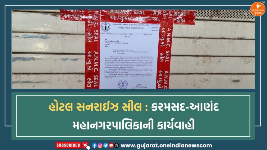 હોટલ સનરાઈઝ સીલ : કરમસદ-આણંદ મહાનગરપાલિકાની કાર્યવાહી