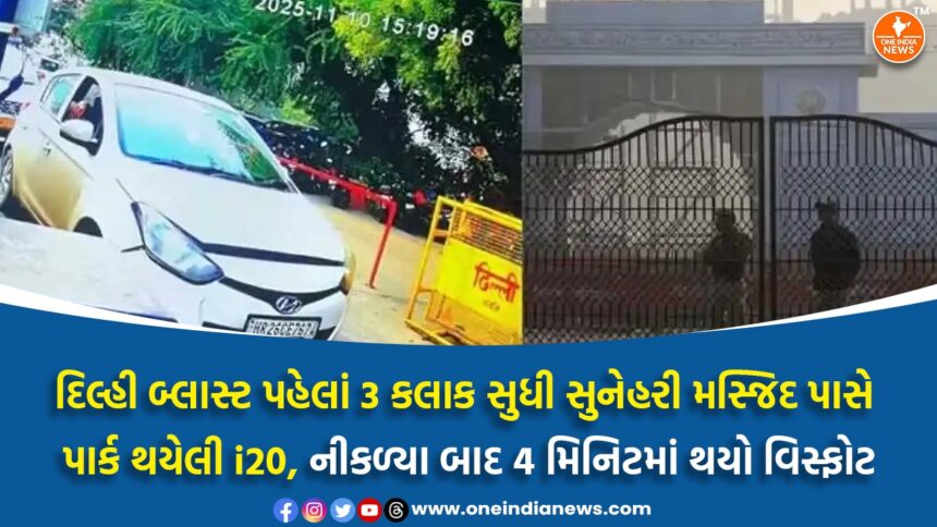 દિલ્હીના લાલ કિલ્લા નજીક થયેલા ભયાનક કાર બ્લાસ્ટની તપાસમાં એક પછી એક ચોંકાવનારી વિગતો બહાર આવી રહી છે. 10 નવેમ્બરનાં સાંજે થયેલા આ વિસ્ફોટમાં અનેક લોકોનાં મોત થયા હતા અને 20થી વધુ લોકો ગંભીર રીતે ઘાયલ થયા હતા. તપાસ એજન્સીઓને મળેલી પ્રાથમિક માહિતી અનુસાર આ વિસ્ફોટમાં વપરાયેલી સફેદ હ્યુન્ડાઈ i20 કાર સવારથી જ દિલ્હીની વિવિધ જગ્યાઓ પર ફરતી જોવા મળી હતી અને અંતે સાંજે લાલ કિલ્લા નજીક ધડાકો થયો હતો.