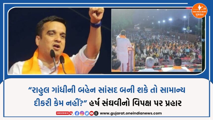 હર્ષ સંઘવીએ પોતાના ભાષણમાં મહિલાઓના રાજકારણમાં વધતા પ્રતિનિધિત્વને લઈને ભાર મૂક્યો હતો. તેમણે કહ્યું હતું કે જો રાહુલ ગાંધીની બહેન પ્રિયંકા ગાંધી વાડ્રા અને અખિલેશ યાદવની પત્ની ડિમ્પલ યાદવ સાંસદ બની શકે, તો સામાન્ય પરિવારની દીકરીઓ કેમ નહીં બની શકે? તેમણે વધુમાં ઉલ્લેખ કર્યો કે લાલુ પ્રસાદ યાદવની પત્ની રાબડી દેવી મુખ્યમંત્રી બની શકે, તો સામાન્ય મહિલાઓ માટે પણ નેતૃત્વના દરવાજા ખુલ્લા હોવા જોઈએ.