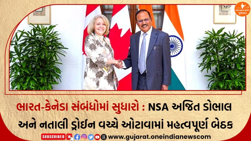 ભારત અને કેનેડા વચ્ચે લાંબા સમયથી ચાલી રહેલા રાજદ્વારી તણાવ વચ્ચે હવે સંબંધોમાં સુધારાના સંકેતો જોવા મળી રહ્યા છે. ભારતના રાષ્ટ્રીય સુરક્ષા સલાહકાર (NSA) અજિત ડોભાલ અને કેનેડાના રાષ્ટ્રીય સુરક્ષા સલાહકાર નતાલી ડ્રોઈન વચ્ચે શનિવારે (7 ફેબ્રુઆરી) ઓટાવામાં હાઈ-પ્રોફાઈલ બેઠક યોજાઈ હતી. આ બેઠક દરમિયાન બંને દેશોએ રાષ્ટ્રીય સુરક્ષા મજબૂત બનાવવી, ગેરકાયદે ડ્રગ્સની હેરાફેરી અટકાવવી અને આંતરરાષ્ટ્રીય ગુનાઈત નેટવર્ક સામે સંયુક્ત રીતે કાર્યવાહી વધારવા પર સહમતિ વ્યક્ત કરી હતી.