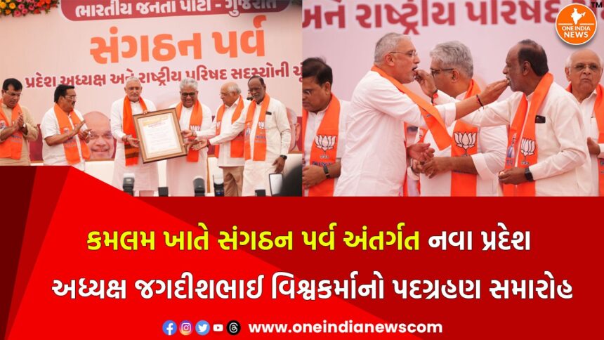 ભારતીય જનતા પાર્ટી ગુજરાત પ્રદેશ મીડિયા વિભાગ એક અખબારી યાદીમાં જણાવે છે કે, આજ રોજ પ્રદેશ કાર્યાલય કમલમ ખાતે સંગઠન પર્વ 2024-25 અંતર્ગત પ્રદેશ અધ્યક્ષ તેમજ રાષ્ટ્રીય પરિષદની ચૂંટણીના પરિણામોની જાહેરાત તેમજ નવ નિયુકત પ્રદેશ અધ્યક્ષ જગદીશભાઇ વિશ્વકર્માજીના પદહગ્રહણ સમારોહ યોજાયો.