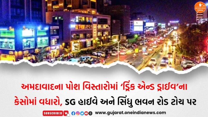 અમદાવાદના પશ્ચિમ ભાગના પોશ વિસ્તારોમાં છેલ્લા ત્રણ વર્ષ દરમિયાન ‘ડ્રિંક એન્ડ ડ્રાઈવ’ના કેસોમાં નોંધપાત્ર વધારો થયો છે. ખાસ કરીને સરખેજ-ગાંધીનગર હાઇવે, સિંધુ ભવન રોડ, બોડકદેવ અને વસ્ત્રાપુર જેવા વિસ્તારોમાં આવા કેસો વધુ નોંધાઈ રહ્યા છે.