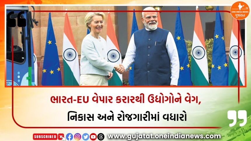 INDIA–EU FTA હેઠળ 90 ટકા કરતા વધુ વસ્તુઓ પર ટેરિફમાં કપાત અથવા સંપૂર્ણ રીતે ટેરિફ દૂર કરવાની શક્યતા છે. તેના કારણે ખાસ કરીને ફાર્માસ્યુટિકલ્સ, એન્જિનિયરિંગ પ્રોડક્ટ્સ, આઇટી સર્વિસિસ અને મેન્યુફેક્ચરિંગ સેક્ટરને મોટો લાભ મળશે, સાથે જ નિકાસમાં વધારો અને રોજગારીની નવી તકોનું સર્જન થવાની સંભાવના પણ વધી જશે.
