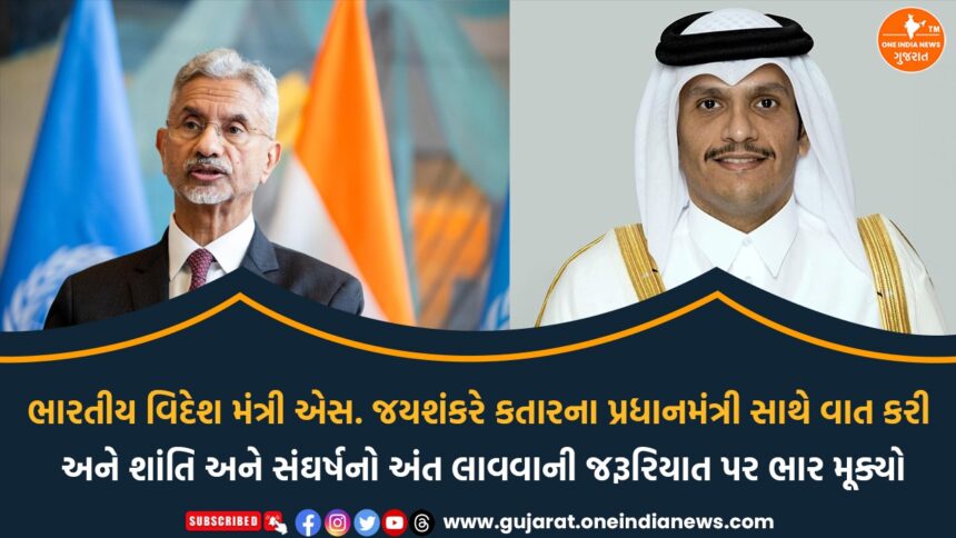 ભારતીય વિદેશ મંત્રી એસ. જયશંકરે કતારના પ્રધાનમંત્રી સાથે વાત કરી અને શાંતિ અને સંઘર્ષનો અંત લાવવાની જરૂરિયાત પર ભાર મૂક્યો