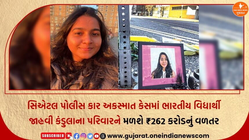 અમેરિકાના સિએટલ શહેરમાં પોલીસ કારની ટક્કરે જીવ ગુમાવનારી ભારતીય વિદ્યાર્થી જાહ્નવી કંડુલાના પરિવારને અંતે ન્યાય મળ્યો છે. વર્ષ 2023માં બનેલી આ દુઃખદ ઘટનાને લઈને લાંબી કાનૂની પ્રક્રિયા બાદ અમેરિકન સત્તાધિકારીઓએ પરિવારને આશરે ₹262 કરોડ (3.1 કરોડ ડોલર)નું વળતર આપવાની ઓફર કરી છે. આ સેટલમેન્ટને પરિવાર માટે નૈતિક જીત તરીકે જોવામાં આવી રહ્યું છે.