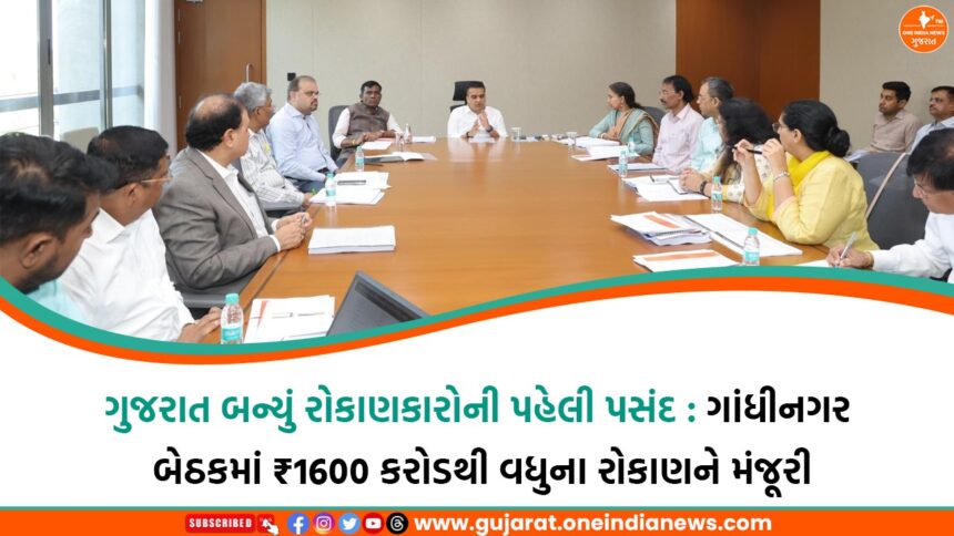 One India News > News > Gandhinagar > ગુજરાત બન્યું રોકાણકારોની પહેલી પસંદ : ગાંધીનગર બેઠકમાં ₹1600 કરોડથી વધુના રોકાણને મંજૂરી