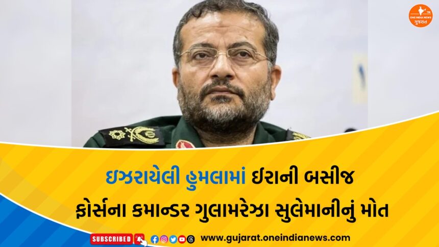 One India News > News > Gujarat > ઇઝરાયેલી હુમલામાં ઈરાની બસીજ ફોર્સના કમાન્ડર ગુલામરેઝા સુલેમાનીનું મોત