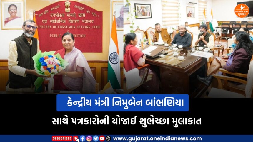 ભાવનગરનાં સાંસદ અને કેન્દ્રીય મંત્રી નિમુબેન બાંભણિયા સાથે પત્રકારોની શુભેચ્છા મુલાકાત યોજાઈ ગઈ. રાજધાની દિલ્લીમાં આ વેળાએ પ્રાસંગિક વાતચીત થઈ.