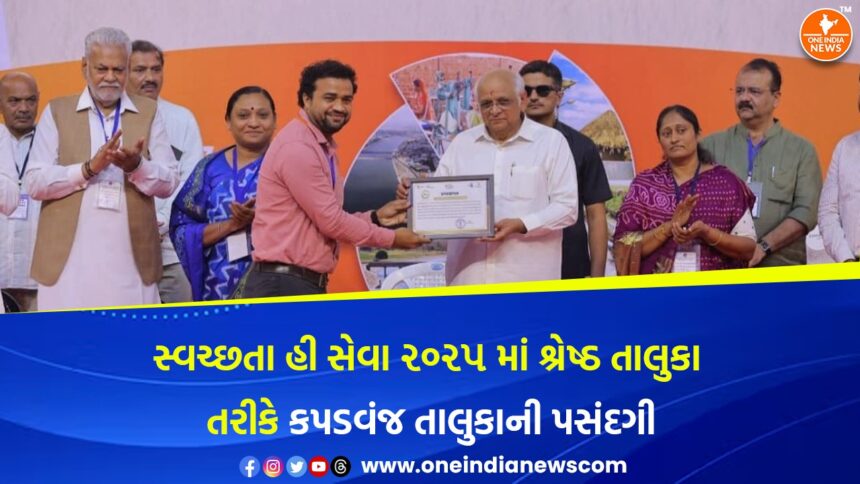 રાજકોટ ખાતે વિકાસ સપ્તાહ અંતર્ગત “વિકસિત ગ્રામ વિકસિત ગુજરાત” કાર્યક્રમમાં મુખ્યમંત્રી ભુપેન્દ્રભાઈ પટેલે સ્વચ્છ ભારત મિશન ગ્રામીણ યોજના અંતર્ગત “સ્વચ્છતા હી સેવા – ૨૦૨૫” અભિયાન દરમ્યાન સ્વચ્છતાની ઉત્તમ કામગીરી બદલ ખેડા જિલ્લાના કપડવંજ તાલુકાને શ્રેષ્ઠ તાલુકો જાહેર કર્યો હતો. કપડવંજ તાલુકા વિકાસ અધિકારી બીપીન પરમારને મુખ્યમંત્રીના હસ્તે શ્રેષ્ઠ તાલુકાનું પ્રમાણપત્ર એનાયત કરી સન્માન કરવામાં આવ્યું હતું.