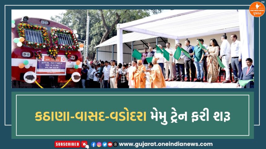 One India News > News > Anand > કઠાણા-વાસદ-વડોદરા મેમુ ટ્રેન ફરી શરૂ